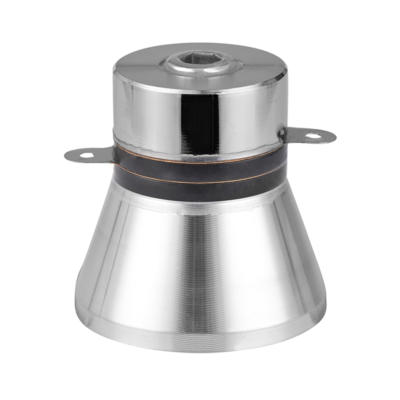 超聲波換能器(振子)是由壓電陶瓷的壓電效應(yīng)實(shí)現(xiàn)電能轉(zhuǎn)換為機(jī)械能(超聲波振動(dòng)),并通過聲阻抗匹配的前后輻射蓋塊進(jìn)行放大的器件。超聲波清洗是通過超聲波換能器(振子)產(chǎn)生的超聲波振動(dòng),在水中發(fā)生空化效應(yīng)對(duì)清洗件上的污物產(chǎn)生的機(jī)械起剝落作用, 同時(shí)能促進(jìn)清洗液與污物發(fā)生化學(xué)反應(yīng), 達(dá)到清洗物件的目的。